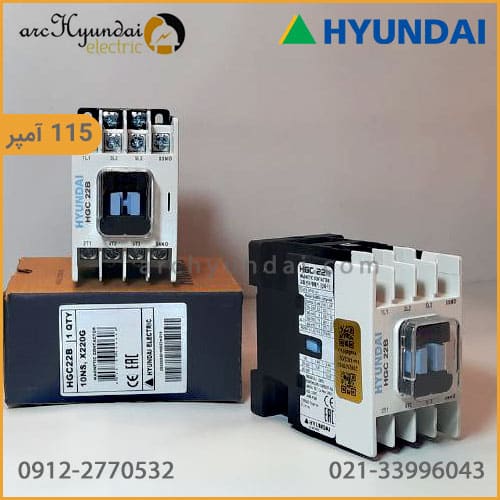 کنتاکتور 115 آمپر هیوندای مدل HGC115 ساخت شرکت هیوندای الکتریک کره جنوبی است. ولتاژ تحریک بوبین این کنتاکتور 220 ولت AC است. و قابلیت راهاندازی الکتروموتور ها را تا رنج 60 کیلووات دارا میباشد. که از جمله الکتروموتور های نیمه سنگین به حساب میآید.